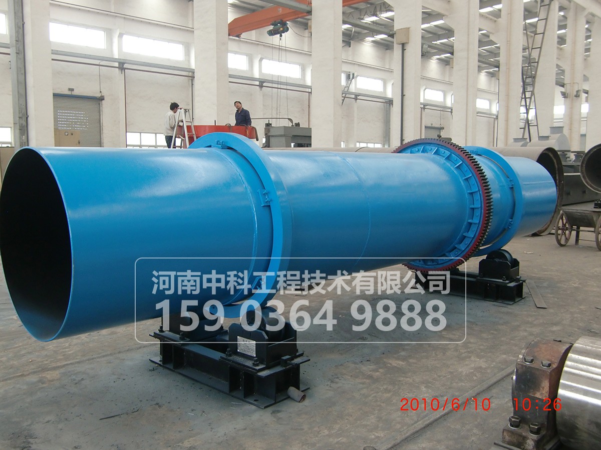 該烘干機主要由回轉體、揚料板、傳動裝置、支撐裝置及密封圈等部件組成。我廠烘干機采用新型揚料板裝置,具有導向、均流、揚料等多項功能,能使物料在烘干機徑向截面全面均布,料幕成為薄、均、全的狀態,完全接觸熱氣流,達到充分利用熱能的目的。我廠烘干機選用合理的運行參數,煤耗量和電耗量一般烘干機降低10-15%以上,臺時產量提高10-15%以上,已在水泥和選礦企業得到了廣泛的應用。