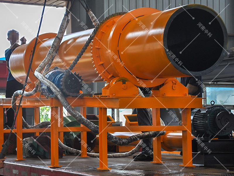 3、烘干機(jī)圓筒是一個與水平線略成傾斜的旋轉(zhuǎn)圓筒。物料從較高一端加入,載熱體由低端進(jìn)入,與物料成逆流接觸,也有載熱體和物料一起并流進(jìn)入筒體的。