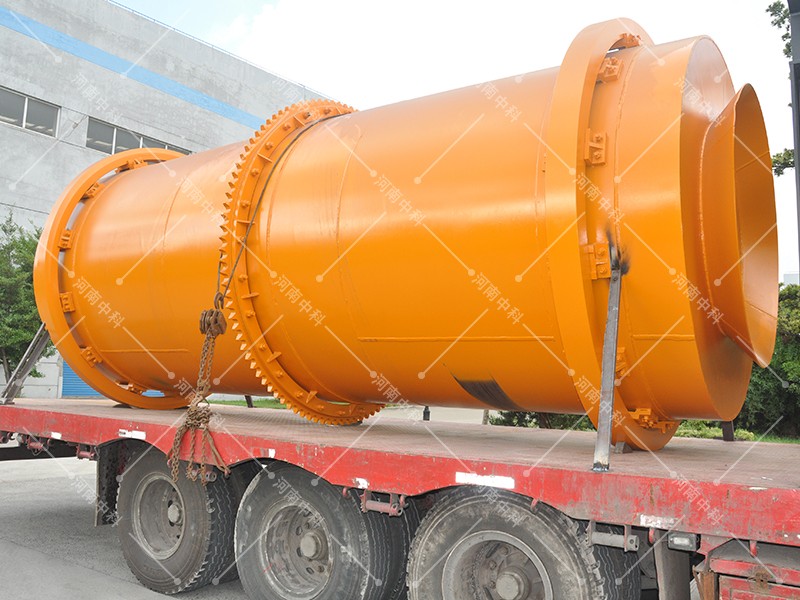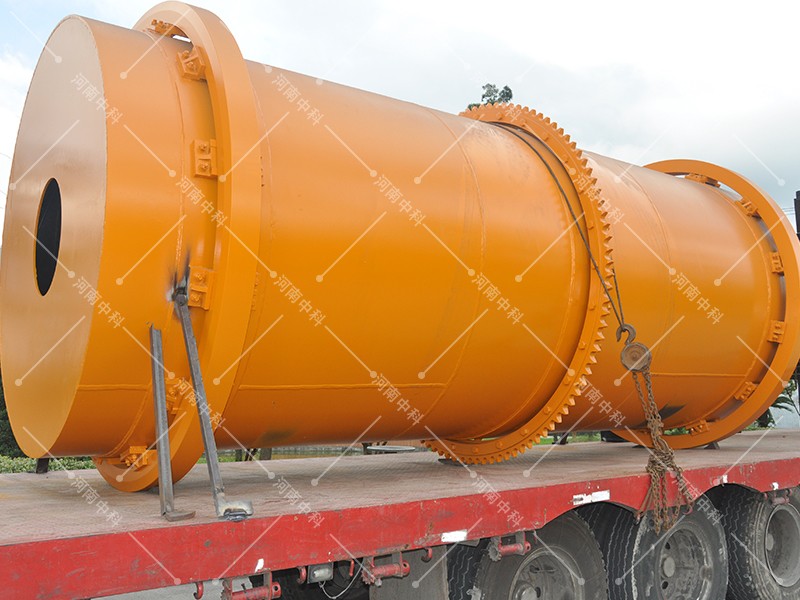 3、烘干機圓筒是一個與水平線略成傾斜的旋轉圓筒。物料從較高一端加入,載熱體由低端進入,與物料成逆流接觸,也有載熱體和物料一起并流進入筒體的。