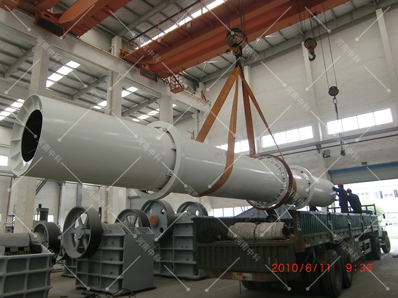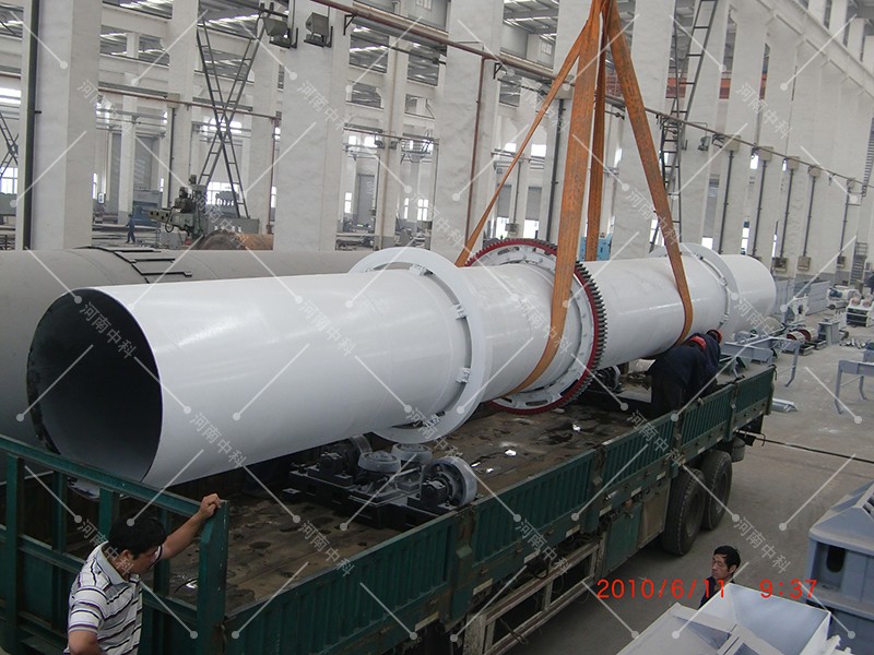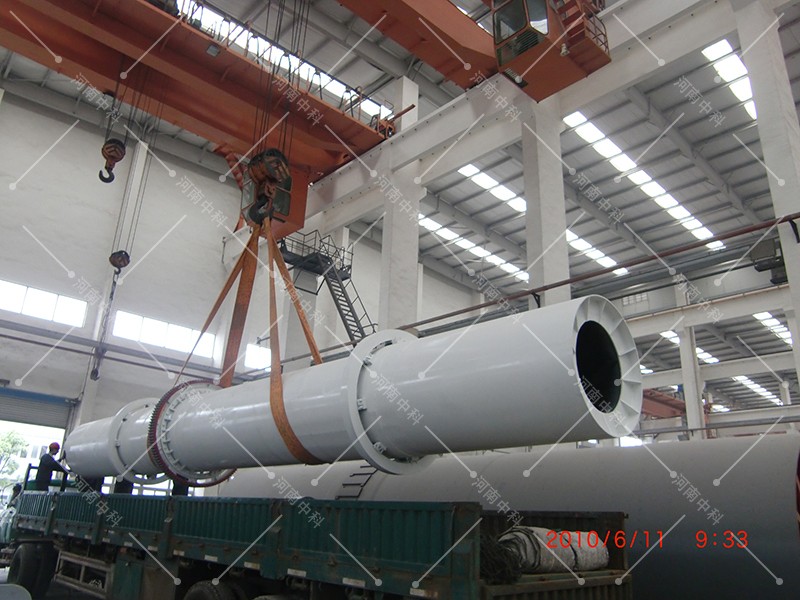 將待干燥的濕物料由皮帶輸送機或斗式提升機送到料斗,然后經料斗的加料機通過加料管道進入加料端。加料管道的斜度要大于物料的自然傾角,以便物料順利流入干燥器內。干燥器圓筒是一個與水平線略成傾斜的旋轉圓筒。物料從較高一端加入,載熱體由低端進入,與物料成逆流接觸,也有載熱體和物料一起并流進入筒體的。隨著圓筒的轉動物料受重力作用運行到較底的一端。濕物料在筒體內向前移動過程中,直接或間接得到了載熱體的給熱,使濕物料得以干燥,然后在出料端經皮帶機或螺旋輸送機送出。在筒體內壁上裝有抄板,它的作用是把物料抄起來又撒下,使物料與氣流的接觸表面增大,以提高干燥速率并促進物料前進。載熱體一般分為熱空氣、煙道氣等。載熱體經干燥器以后,一般需要旋風除塵器將氣體內所帶物料捕集下來。如需進一步減少尾氣含塵量,還應經過袋式除塵器或濕法除塵器后再排放。
