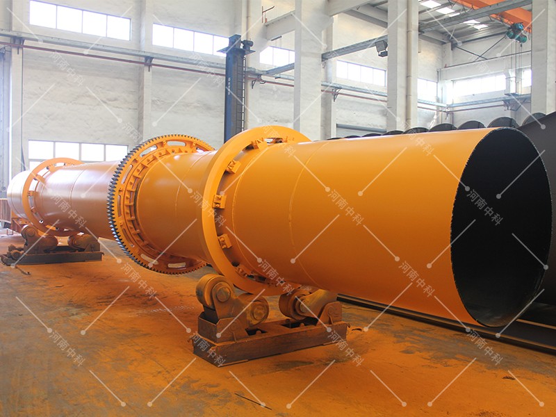 3、烘干機圓筒是一個與水平線略成傾斜的旋轉圓筒。物料從較高一端加入,載熱體由低端進入,與物料成逆流接觸,也有載熱體和物料一起并流進入筒體的。